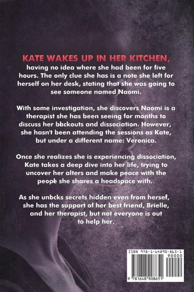 Kate wakes up in her kitchen, having no idea where she had been for five hours. The only clue she has is a note she left for herself on her desk, stating that she was going to see someone named Naomi. With some investigation, she discovers Naomi is a therapist she has been seeing for months to discuss her blackouts and dissociation. However, she hasn't been attending the sessions as Kate, but under a different name: Veronica. Once she realizes she is experiencing dissociation, Kate takes a deep dive into her life, trying to uncover her alters and make peace with the people she shares a headspace with. As she unlocks secrets hidden even from herself, she has the support of her best friend, Brielle, and her therapist, but not everyone is out to help her.