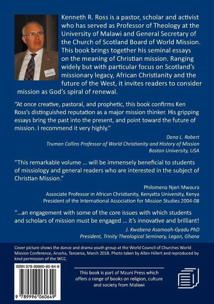 In this remarkable volume covering diverse subjects, in a span of three decades, Kenneth R. Ross articulates his views on the meaning and practice of Christian mission and challenges the binary view of mission that prevailed before the 1950s. He further reflects on Scotland's experiences in the world-wide Christian mission and demonstrates the centrality of Africa in any discourse on Christianity. This volume is invaluable in its argument for a rethinking of Christian mission especially in relation to the West, which is now a new frontier for Christian mission. The book will be immensely beneficial to students of missiology and general readers who are interested in the subject of Christian Mission.