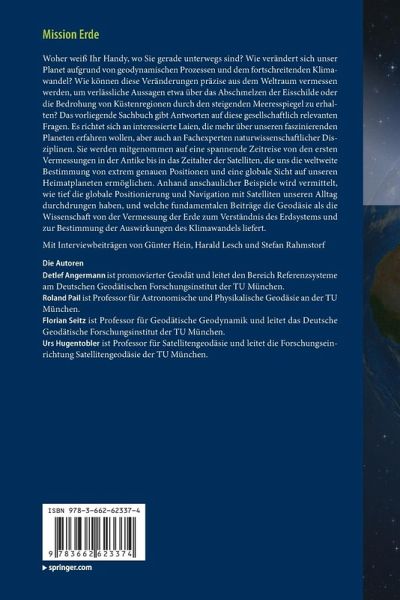 Woher weiß Ihr Handy, wo Sie gerade unterwegs sind? Wie verändert sich unser Planet aufgrund von geodynamischen Prozessen und dem fortschreitenden Klimawandel? Wie können diese Veränderungen präzise aus dem Weltraum vermessen werden, um verlässliche Aussagen etwa über das Abschmelzen der Eisschilde oder die Bedrohung von Küstenregionen durch den steigenden Meeresspiegel zu erhalten? Das vorliegende Sachbuch gibt Antworten auf diese gesellschaftlich relevanten Fragen. Es richtet sich an interessierte Laien, die mehr über unseren faszinierenden Planeten erfahren wollen, aber auch an Fachexperten naturwissenschaftlicher Disziplinen. Sie werden mitgenommen auf eine spannende Zeitreise von den ersten Vermessungen in der Antike bis in das Zeitalter der Satelliten, die uns die weltweite Bestimmung von extrem genauen Positionen und eine globale Sicht auf unseren Heimatplaneten ermöglichen. Anhand anschaulicher Beispiele wird vermittelt, wie tief die globale Positionierung und Navigation mit Satelliten unseren Alltag durchdrungen haben, und welche fundamentalen Beiträge die Geodäsie als die Wissenschaft von der Vermessung der Erde zum Verständnis des Erdsystems und zur Bestimmung der Auswirkungen des Klimawandels liefert.