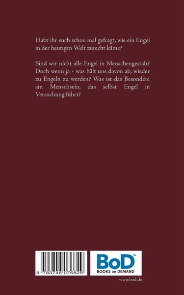 Habt ihr euch schon mal gefragt, wie ein Engel in der heutigen Welt zurecht käme?Sind wir nicht alle Engel in Menschengestalt? Doch wenn ja - was hält uns davon ab, wieder zu Engeln zu werden? Was ist das Besondere am Menschsein, das selbst Engel in Versuchung führt?
