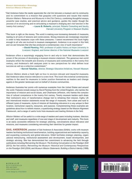 This book provides a fresh and practical look on mission statements and strategic thinking. Anderson lays out the importance of mission statements while providing useful examples of vision, values, and other components typically a part of a museum’s strategic framework. This book takes the discussion to the present and into the future.