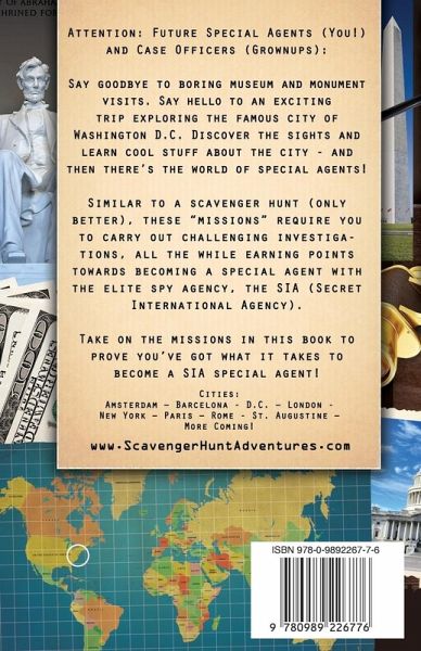 Headed to Washington, D.C. with kids? Want to ensure your young explorers get the most out of their incredible opportunity to experience the U.S. capital? Then you've come to the right place! Mission Washington, D.C. takes your young travelers through the famous sights of D.C., engaging them in an exciting scavenger hunt as you explore city landmarks together. Say "goodbye" to a trip filled with the stress of keeping everyone entertained. Instead, say "hello!" to a memorable family trip. Imagine - your kids will be excited to sightsee (yes, even at museums!) as you discover the wonders of D.C. as a family. Get Mission Washington, D.C. today for your young jet-setters…and make sure it’s in their bag when they take off for the U.S. capital! Mission Washington, D.C. offers a fun vacation for everyone - with a captivating, spy-theme scavenger hunt packed with entertaining activities. When your kids set off on their "mission," with the goal of earning enough points to become a "special agent," they’ll gain points as: -History Sleuths: They’ll search for clues in the statues and sculptures of the Capitol, Supreme Court, MLK, Jr. Memorial, World War II Memorial, to name only a few. -Culture Detectives: They’ll discover the fascinating stories as they explore the collections of the American History Museum, Air and Space Museum and the Natural History Museum. -Monument Investigators: They’ll uncover clues on the Washington Monument, Lincoln Memorial …and many more engaging activities. Experiencing D.C. is an amazing opportunity for anyone, especially a young person. Make your kids’ trip one to remember. Get Mission Washington, D.C. today for your young explorers…and be sure it’s in their suitcase when they set off for the Capital City! Our series also includes books for New York, Paris, Rome, London, Amsterdam, Florence, Barcelona, and St. Augustine.
