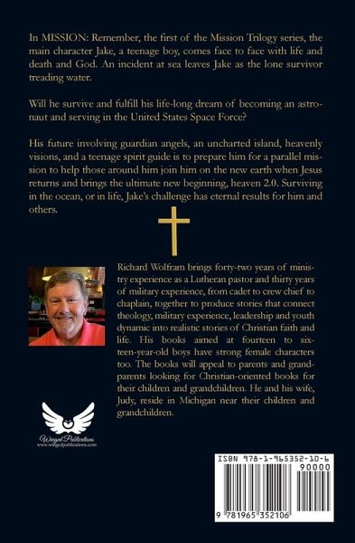 In MISSION: Remember, the first of the Mission Trilogy series, the main character Jake, a teenage boy, comes face to face with life and death and God. An incident at sea leaves Jake as the lone survivor treading water. Will he survive and fulfill his life-long dream of becoming an astronaut and serving in the United States Space Force? His future involving guardian angels, an uncharted island, heavenly visions, and a teenage spirit guide is to prepare him for a parallel mission to help those around him join him on the new earth when Jesus returns and brings the ultimate new beginning, heaven 2.0. Surviving in the ocean, or in life, Jake's challenge has eternal results for him and others.