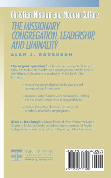 The urgent question for Christian mission in North America today has to do with churches and congregations and the crisis of their identity in the culture of modernity. According to Alan J. Roxburgh, the church has shifted from the center of culture to the margins. This text examines this shift and explores Victor Turner's work on liminality (a term describing the transition process that accompanies a change of state or social position).