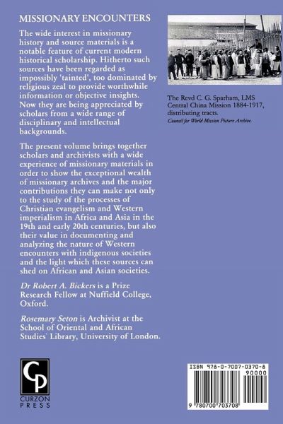 Introduction, David Arnold, Robert A. Bickers; Chapter 1 "Mighty England do Good", Steven Maughan; Chapter 2 Some Problems in Writing a Missionary Society History Today, Brian Stanley; Chapter 3 "Open Doors for Female Labourers", Rosemary Seton; Chapter 4 *Any user of the CMS Archive must owe a large debt of gratitude to Miss Rosemary Keen, Archivist of the Church Missionary Society, who produced the excellent catalogue, and to the Archives's present custodians, the helpful and knowledgeable staff of the Heslop Room, Birmingham University Library, notably Dr B. S. Benedikz and Miss Christine Penney., J. D. Y. Peel; Chapter 5 Four Nineteenth-Century Pictorial Images from Africa in the Basel Mission Archive and Library CollectionsI would like to express my especial thanks to the School of Oriental and African Studies for inviting me to take part in its Workshop on Mission Archives; to Timothy Garrard for his stimulating comments on three of the images discussed here; and to Barbara Frey, Claudia Fritz, Regula Iselin and Anna Pytlik for their open-minded and critical work together in the current project to catalogue the Basel Mission's photographic archive and to publish it in an interactive electronic system., Paul Jenkins; Chapter 6 Women and Education in South Africa, Deborah Gaitskell; Chapter 7 The Nature of a Mission Community, Justin Willis; Chapter 8 *Part Icipation in the Workshop on Missionary Archives was made possible by a grant from the Netherlands Organisation for Scientific Research (NWO) and the British Academy., Dick Kooiman; Chapter 9 A 'Peculiar and Exceptional Measure', Rosemary Fitzgerald; Chapter 10 Missionaries as Social Commentators, Geoffrey A. Oddie; Chapter 11 "To Serve and Not to Rule", Robert A. Bickers; appendix Archival Sources in Britain for the Study of Mission History, Rosemary Seton;