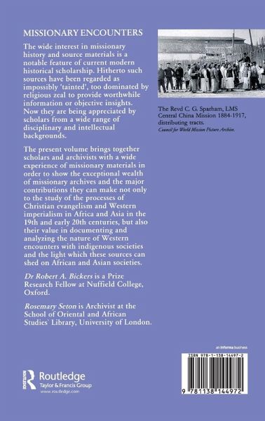Introduction, David Arnold, Robert A. Bickers; Chapter 1 "Mighty England do Good", Steven Maughan; Chapter 2 Some Problems in Writing a Missionary Society History Today, Brian Stanley; Chapter 3 "Open Doors for Female Labourers", Rosemary Seton; Chapter 4 *Any user of the CMS Archive must owe a large debt of gratitude to Miss Rosemary Keen, Archivist of the Church Missionary Society, who produced the excellent catalogue, and to the Archives's present custodians, the helpful and knowledgeable staff of the Heslop Room, Birmingham University Library, notably Dr B. S. Benedikz and Miss Christine Penney., J. D. Y. Peel; Chapter 5 Four Nineteenth-Century Pictorial Images from Africa in the Basel Mission Archive and Library CollectionsI would like to express my especial thanks to the School of Oriental and African Studies for inviting me to take part in its Workshop on Mission Archives; to Timothy Garrard for his stimulating comments on three of the images discussed here; and to Barbara Frey, Claudia Fritz, Regula Iselin and Anna Pytlik for their open-minded and critical work together in the current project to catalogue the Basel Mission's photographic archive and to publish it in an interactive electronic system., Paul Jenkins; Chapter 6 Women and Education in South Africa, Deborah Gaitskell; Chapter 7 The Nature of a Mission Community, Justin Willis; Chapter 8 *Part Icipation in the Workshop on Missionary Archives was made possible by a grant from the Netherlands Organisation for Scientific Research (NWO) and the British Academy., Dick Kooiman; Chapter 9 A 'Peculiar and Exceptional Measure', Rosemary Fitzgerald; Chapter 10 Missionaries as Social Commentators, Geoffrey A. Oddie; Chapter 11 "To Serve and Not to Rule", Robert A. Bickers; appendix Archival Sources in Britain for the Study of Mission History, Rosemary Seton;