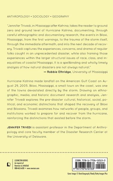 In Mississippi After Katrina, Jennifer Trivedi takes an holistic anthropological lens to the city of Biloxi, Mississippi, and illustrates how Hurricane Katrina revealed the cultural, political, and economic issues that shaped the community’s history, the storm’s impact, and Biloxi’s long-term recovery from Katrina.