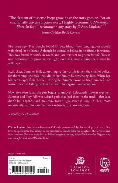 Five years ago Trey Bouche found his best friend - with blood on his hands - standing over a body. Although Trey wanted to believe in his friend's innocence, he was forced to testify in court, and Jace was sent to prison for life. Trey returns determined to prove he was right. Even if it means losing the woman he still loves. Summer Hill cannot forgive Trey, or his father, the chief of police, for the wrongs she feels they did to her family. When her brother escapes from Angola, Summer vows to keep her brother safe, no matter the cost. Falling back in love with Trey again isn't an option. Now, five years later, the past begins to unravel. Reluctantly thrown together, Summer and Trey follow a twisted path that lead them to the truth - Jace didn't kill anyone and an entire town's ugly secret is unveiled. But more importantly, can Trey and Summer rediscover the love they lost? Sensuality Level: Sensual