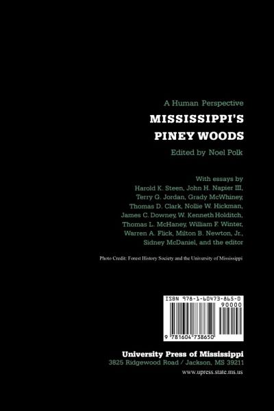 Mississippi's Piney Woods: A Human Perspective edited by Noel Polk with essays by Harold K. Steen, John H. Napier III, Terry G. Jordan, Grady McWhiney, Thomas D. Clark, Nollie W. Hickman, James C. Downey, W. Kenneth Holditch, Thomas L. McHaney, William F. Winter, Warren A. Flick, Milton B. Newton, Jr., Sidney McDaniel, and Noel Polk. For years the Mississippi Piney Woods region has gone virtually untouched by historians, though J. F. H. Claiborne and James Street have made wonderful use of its colorful and significant past. Only Nollie Hickman's Mississippi Harvest has attempted to examine in full any aspect of the area's history and culture in his study focusing on the area's important lumber industry. This book, Mississippi's Piney Woods: A Human Perspective, the papers from the first Crosby Memorial Lecture Series at the University of Southern Mississippi, is a groundbreaking volume in Mississippi studies in that it is an attempt to open the Piney Woods to historical and cultural scrutiny, and it is one of the first volumes on the subject of Mississippi history to approach any area of the state from so many diverse but complementary scholarly disciplines. Among the topics explored by first-rate scholars are the area's geography, its pioneer settlers' roots in Europe, its lumber industry, its politics, its music, its economics, and its literature. As a whole, the volume demonstrates the ways in which each of these topics and approaches intersects with and impinges upon the others, and thus suggests the ways in which the life of any region is determined not by any single force, even when that force is in some ways overwhelming, but by a complex and subtle intermingling of a variety of vital forces which exert pressures on the life of the individual from many different sources. This volume undertakes to explore these diverse forces, and thus to show how they converge and interact to shape the lives of human beings in any age and region. Noel Polk is Professor Emeritus of English at Mississippi State University and the editor of The Mississippi Quarterly.