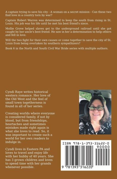 A captain trying to save his city - A woman on a secret mission - Can these two find love in a country torn by war? Captain Robert Warren was determined to keep the south from rising in St. Louis. His job was his life until he met his best friend's niece. Mollie Grove helped slaves get to the underground railroad until she got caught by her uncle's best friend. He saw in her a determination to help others and fell in love. Will the two fight for their own causes or come together to save the city of St. Louis from being overtaken by southern sympathizers? Book 6 in the North and South Civil War Bride series with multiple authors.