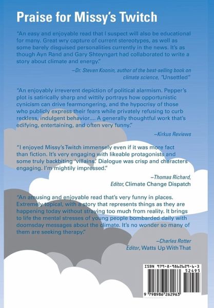 Heiress to an energy fortune built off fossil fuels, recent college graduate Missy Mayburn Crowe is stricken with overwhelming anxiety over what she fears is a looming "climate apocalypse" and her family's role in it. She develops an involuntary twitch, a conversion disorder that quickly spreads to her impressionable young friends who have been bombarded their entire lives with questionable predictions of climate doom. Missy is diagnosed by a famed TV shrink as suffering from acute climatosis. Exposure on television and in social media quickly propels her affliction into a worldwide social contagion and Missy into a celebrity ripe for exploitation by politicians, media, and business opportunists eager to leverage her torment for their own objectives. A cure may require a deeper understanding of whether her worries are justified or not. Told with humor, insight, and brisk pacing, Missy's Twitch offers an entertaining twist on conventional wisdom about one of the most controversial issues of our time. JON PEPPER is a novelist, entrepreneur, and business consultant based in New York City. Missy's Twitch is the fourth novel in his series, Fossil Feuds.