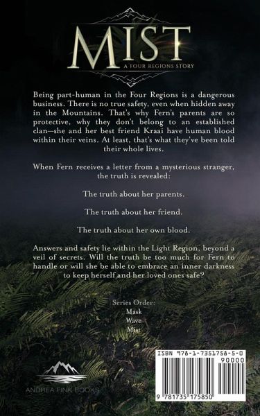 Being part-human in the Four Regions is a dangerous business. There is no true safety, even when hidden away in the Mountains. That's why Fern's parents are so protective, why they don't belong to an established clan-she and her best friend Kraai have human blood within their veins. At least, that's what they've been told their whole lives. When Fern receives a letter from a mysterious stranger, the truth is revealed: The truth about her parents. The truth about her friend. The truth about her own blood. Answers and safety lie within the Light Region, beyond a veil of secrets. Will the truth be too much for Fern to handle or will she be able to embrace an inner darkness to keep herself and her loved ones safe? From the author of Mask and Wave comes the final installment of the Four Regions trilogy. Venture into the Light Region and the Mountains to discover the secrets these two mysterious regions hide.