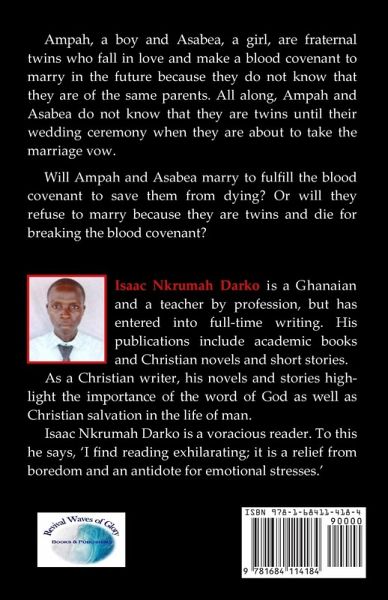 Ampah, a boy and Asabea, a girl, are fraternal twins who fall in love and make a blood covenant to marry in the future because they do not know that they are of the same parents. All along, Ampah and Asabea do not know that they are twins until their wedding ceremony when they are about to take the marriage vow. Will Ampah and Asabea marry to fulfill the blood covenant to save them from dying? Or will they refuse to marry because they are twins and die for breaking the blood covenant?
