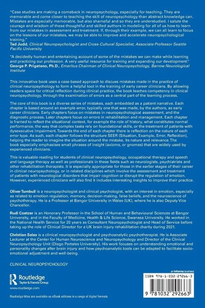 This innovative book uses a case-based approach to discuss mistakes made in the practice of clinical neuropsychology to form a helpful tool in the training of early career clinicians. By allowing readers space for critical reflection during clinical practice, the book teaches competency in clinical neuropsychology, through the examination of errors as a central part of the learning process.