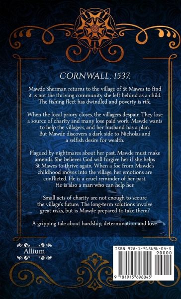 A woman who must atone for her past. A village that needs her courage. CORNWALL, 1537. Mawde Sherman returns to the village of St Mawes to find it is not the thriving community she left behind as a child. The fishing fleet has dwindled and poverty is rife. When the local priory closes, the villagers despair. They lose a source of charity and many lose paid work. Mawde wants to help the villagers, and her husband has a plan. But Mawde discovers a dark side to Nicholas and a selfish desire for wealth. Plagued by nightmares about her past, Mawde must make amends. She believes God will forgive her if she helps St Mawes to thrive again. When a foe from Mawde's childhood moves into the village, her emotions are conflicted. He is a cruel reminder of her past. He is also a man who can help her. Small acts of charity are not enough to secure the village's future. The long-term solutions involve great risks, but is Mawde prepared to take them? A gripping tale about hardship, determination and love.
