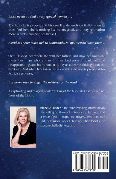 Bjorn needs to find a very special woman . . . The fate of his people, and his own life, depends on it. But when he does find her, she is nothing like he imagined, and may just harbor more secrets than he does himself. Astrid has never taken well to commands. No matter who issues them . . . She's clashed her whole life with her father, and now her lover--the mysterious man who comes to her bedroom in darkness and disappears to guard his mountain by day as a bear--is finding it out the hard way. And when he's taken by his enemies, no one is prepared for Astrid's response. It is never wise to anger the mistress of the wind . . . A captivating and magical adult retelling of the fairy tale East of the Sun, West of the Moon.