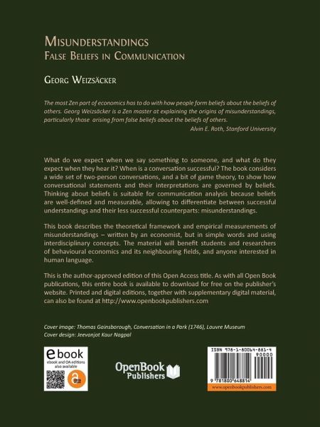What do we expect when we say something to someone, and what do they expect when they hear it? When is a conversation successful? The book considers a wide set of two-person conversations, and a bit of game theory, to show how conversational statements and their interpretations are governed by beliefs. Thinking about beliefs is suitable for communication analysis because beliefs are well-defined and measurable, allowing to differentiate between successful understandings and their less successful counterparts: misunderstandings. The book describes the theoretical framework and empirical measurements of misunderstandings - written by an economist, but in simple words and using interdisciplinary concepts. The material will benefit students and researchers of behavioural economics and its neighbouring fields, and anyone interested in human language.