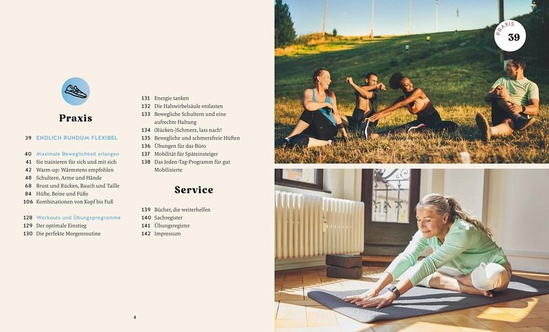 Statisches Dehnen war lange das Mittel der Wahl bei Schmerzen, Bewegungseinschränkungen und Fehlhaltungen. Heute weiß man: Die wahre Lösung liegt in einem ganzheitlichen Ansatz: Mobility-Training. Dieses dynamische Training, im Leistungssport und in der Rehabilitation längst bewährt, feiert nun in der Fitnesswelt große Erfolge. Es vereint Flexibilität mit motorischer Kontrolle und geht weit über herkömmliches Dehnen hinaus. Jede Bewegung wird präzise durch Muskelkraft kontrolliert. Das Ziel: den größtmöglichen und schmerzfreien Bewegungsumfang zu erreichen. Sogar noch mehr: verjüngte Gefäße, eine jugendliche Ausstrahlung und straffere Konturen. Mit den Mini-Workouts für Rücken, Schultern, Hüftbeuger & Co. kommen Sie sofort auf die Verjüngungsspur.