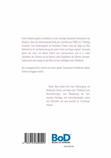 Frank Wedekind gehört zweifelsohne zu den wichtigen deutschen Dramatikern der Moderne. Doch der bahnbrechende Erfolg der Uraufführung (1906) von 'Frühlings Erwachen. Eine Kindertragödie' am Deutschen Theater unter der Regie von Max Reinhardt ist für die Nachwirkung des Autors Fluch und Segen zugleich. Einerseits gehört der Autor mit diesem Drama zum Litertaturkanon und ist in vielen Lehrplänen der Schulen und auf ebenso vielen Spielplänen der Bühnen vertreten. Andererseits aber beengt es den Blick auf den vielfältigen Autor Wedekind. Dieser Band bietet eine neue Übertragung von Wedekinds Drama und neben dem Primärtext auch Worterklärungen, eine Übersetzung der französischen Beiträge, eine Autorenbiographie, sowie eine Werktafel und eine Auswahl an Forschungsliteratur.