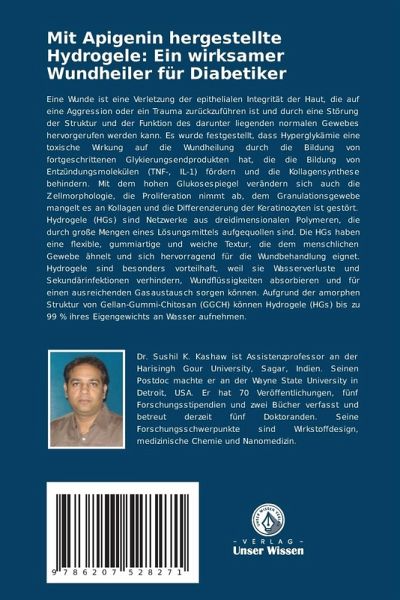 Eine Wunde ist eine Verletzung der epithelialen Integrität der Haut, die auf eine Aggression oder ein Trauma zurückzuführen ist und durch eine Störung der Struktur und der Funktion des darunter liegenden normalen Gewebes hervorgerufen werden kann. Es wurde festgestellt, dass Hyperglykämie eine toxische Wirkung auf die Wundheilung durch die Bildung von fortgeschrittenen Glykierungsendprodukten hat, die die Bildung von Entzündungsmolekülen (TNF-, IL-1) fördern und die Kollagensynthese behindern. Mit dem hohen Glukosespiegel verändern sich auch die Zellmorphologie, die Proliferation nimmt ab, dem Granulationsgewebe mangelt es an Kollagen und die Differenzierung der Keratinozyten ist gestört. Hydrogele (HGs) sind Netzwerke aus dreidimensionalen Polymeren, die durch große Mengen eines Lösungsmittels aufgequollen sind. Die HGs haben eine flexible, gummiartige und weiche Textur, die dem menschlichen Gewebe ähnelt und sich hervorragend für die Wundbehandlung eignet. Hydrogele sind besonders vorteilhaft, weil sie Wasserverluste und Sekundärinfektionen verhindern, Wundflüssigkeiten absorbieren und für einen ausreichenden Gasaustausch sorgen können. Aufgrund der amorphen Struktur von Gellan-Gummi-Chitosan (GGCH) können Hydrogele (HGs) bis zu 99 % ihres Eigengewichts an Wasser aufnehmen.