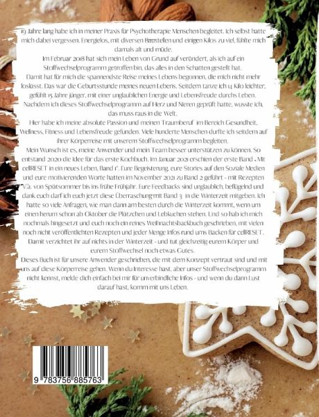 Ein Stoffwechselprogramm erobert die Welt. Seit September 2012 hat dieses fantastische Konzept von Deutschland aus seinen Siegeszug um die Welt angetreten. Weit über eine Million zufriedener Anwender, tagtägliche begeisterte Berichte und dieses unglaublich leichte Lebensgefühl begeistern mich seit fast 5 Jahren. Dieses Buch ist Band 3 zum 10-jährigen Geburtstag unseres Stoffwechselprogramms - angefüllt mit meinen liebsten weihnachtlichen Backrezepten, so dass du in unserem Stoffwechselprogramm ab der Stabilisierungsphase leicht, gesund und trotzdem mit leckeren Weihnachtsplätzchen, Kuchen und Stollen durch die kalte Jahreszeit tanzen kannst.