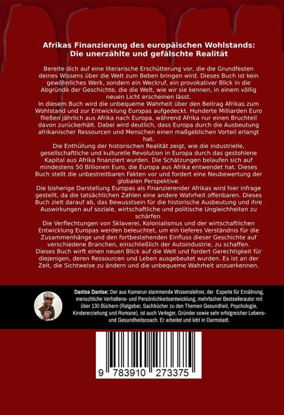Mit dem Blut der Schwarzen: Blut-Wohlstand des Westens - die unerzählten Geschichten, von Dantse Dantse.Spuren des Unrechts - schwarze Opfer, weiße Profite: Mit Blut, Leib, Leid, Tod, Reichtum und Geld der Schwarzen seit 500 Jahren.Schatten der Geschichte: Afrikas Finanzierung des europäischen Wohlstands - die unbeachtete RealitätEuropäische Verbrechen gegen die Menschlichkeit in Afrika und ihre andauernden AuswirkungenMit Blut, Leib und Leben, Tod und Geld der Schwarzen: Die Grundlage und Fortführung der modernen Welt wurde und wird mit Verbrechen gegen die Menschlichkeit geschaffen.In diesem Buch werden die unerzählten Geschichten erzählt, die uns zeigen, wie wir in einer Lügenwelt leben. In einer Welt voller Illusionen, in der die Reichen denken, sie seien arm und die Armen sich reich fühlen. Alles ist Manipulation, und du wirst an allem zweifeln.In diesem Buch wird die unbequeme Wahrheit über den Beitrag Afrikas zum Wohlstand und zur Entwicklung Europas und Amerikas aufgedeckt. Es ist Zeit, die bisherige Darstellung Europas als Finanzierende Afrikas infrage zu stellen und die tatsächlichen Zahlen und Fakten zu betrachten.Es ist eine traurige Tatsache, dass die Grundlage und Fortführung der modernen Welt durch Verbrechen gegen die Menschlichkeit geschaffen wurde und wird. Insbesondere Sklavenhandel und Kolonialismus waren zentrale Elemente, die das Fundament für den Wohlstand und die Macht in Amerika und Europa bildeten. Die wirtschaftlichen, politischen und technologischen Strukturen, von denen wir heute profitieren, wurden auf Kosten von schwarzen Menschen aufgebaut und fortgeführt. Die Sklaverei und der Kolonialismus führten zum Verlust unzähliger Menschenleben, zur Auslöschung ganzer Kulturen und zu unvorstellbarem Leid und Traumata über Generationen hinweg.Europa und Amerika erlebten während der Zeit des Kolonialismus einen starken sozialen und industriellen Aufschwung sowie eine industrielle Revolution. Doch es ist von großer Bedeutung, anzuerkennen, dass dieser Aufschwung auf schlimmen Verbrechen gegen die Menschlichkeit basierte. Der Wohlstand und die Entwicklung Europas und Amerikas erfolgten auf Kosten von Millionen versklavter schwarzer Kinder, Frauen und Männer, dem Diebstahl afrikanischer Ressourcen, der massiven Folter, Gewalt, Vergewaltigung, Zwangsarbeit und dem Tod von Millionen Schwarzen. Die tatsächlichen Ausmaße dieser Verbrechen wurden oft von den europäischen Ländern verschleiert, um ihre eigene Schuld zu mindern. Dieses Buch wird sich eingehend mit dem Geschehenen in Afrika beschäftigen, um diese schrecklichen Verbrechen aufzudecken.In diesem Buch wird die unbequeme Wahrheit über den Beitrag Afrikas zum Wohlstand und zur Entwicklung Europas aufgedeckt. Hunderte Milliarden Euro fließen jährlich aus Afrika nach Europa, während Afrika nur einen Bruchteil davon zurückerhält. Dabei wird deutlich, dass Europa durch die Ausbeutung afrikanischer Ressourcen und Menschen maßgebliche Vorteile erlangt hat.Die Enthüllung der historischen Realität zeigt, wie die industrielle, gesellschaftliche und kulturelle Revolution in Europa durch den Tod von mehreren dutzenden Millionen afrikanischen Menschen, Zwangsarbeit, Folter und dem gestohlenen Kapital aus Afrika finanziert wurde. Die Schätzungen belaufen sich auf mindestens 50 Billionen Euro, die Europa aus Afrika entwendet hat. Dieses Buch stellt die unbestreitbaren Fakten vor und fordert eine Neubewertung der globalen Perspektive.Die bisherige Darstellung Europas als Finanzierender Afrikas wird hier infrage gestellt, da die tatsächlichen Zahlen eine andere Wahrheit offenbaren. Dieses Buch zielt darauf ab, das Bewusstsein für die historische Ausbeutung und ihre Auswirkungen auf soziale, wirtschaftliche und politische Ungleichheiten zu schärfen.Die Verflechtungen von Sklaverei, Kolonialismus und der wirtschaftlichen Entwicklung Europas werden beleuchtet, um ein tieferes Verständnis für die Zusammenhänge und den fortbestehenden Einfluss dieser Geschichte auf