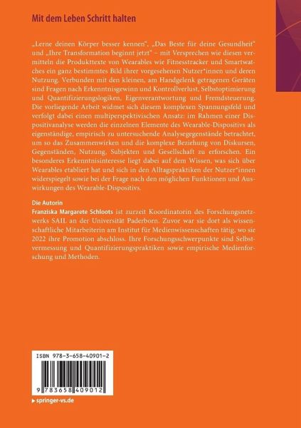 "Lerne deinen Körper besser kennen", "Das Beste für deine Gesundheit" und "Ihre Transformation beginnt jetzt" - mit Versprechen wie diesen vermitteln die Produkttexte von Wearables wie Fitnesstracker und Smartwatches ein ganz bestimmtes Bild ihrer vorgesehenen Nutzer_innen und deren Nutzung. Verbunden mit den kleinen, am Handgelenk getragenen Geräten sind Fragen nach Erkenntnisgewinn und Kontrollverlust, Selbstoptimierung und Quantifizierungslogiken, Eigenverantwortung und Fremdsteuerung. Die vorliegende Arbeit widmet sich diesem komplexen Spannungsfeld und verfolgt dabei einen multiperspektivischen Ansatz: im Rahmen einer Dispositivanalyse werden die einzelnen Elemente des Wearable-Dispositivs als eigenständige, empirisch zu untersuchende Analysegegenstände betrachtet, um so das Zusammenwirken und die komplexe Beziehung von Diskursen, Gegenständen, Nutzung, Subjekten und Gesellschaft zu erforschen. Ein besonderes Erkenntnisinteresse liegt dabei auf dem Wissen, was sich über Wearables etabliert hat und sich in den Alltagspraktiken der Nutzer_innen widerspiegelt sowie bei der Frage nach den möglichen Funktionen und Auswirkungen des Wearable-Dispositivs.