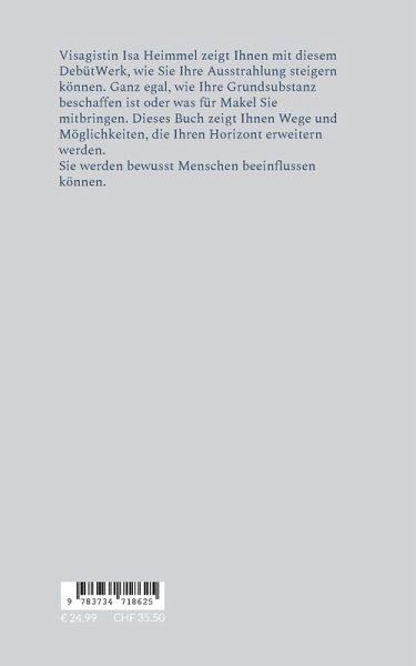 Visagistin Isa Heimmel zeigt Ihnen mit diesem DebütWerk, wie Sie Ihre Ausstrahlung steigern können. Ganz egal, wie Ihre Grundsubstanz beschaffen ist oder was für Makel Sie mitbringen. Dieses Buch zeigt Ihnen Wege und Möglichkeiten, die Ihren Horizont erweitern werden. Sie werden bewusst Menschen beeinflussen können.