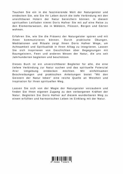 Tauchen Sie ein in die faszinierende Welt der Naturgeister und entdecken Sie, wie Sie Ihr Leben durch die tiefe Verbindung mit den unsichtbaren Hütern der Natur bereichern können. In diesem spirituellen Leitfaden nimmt Doris Hafner Sie mit auf eine Reise zu den Elementarwesen, die in Wäldern, Flüssen, Bergen und Gärten wohnen.Erfahren Sie, wie Sie die Präsenz der Naturgeister spüren und mit ihnen kommunizieren können. Durch praktische Übungen, Meditationen und Rituale zeigt Ihnen Doris Hafner Wege, um Achtsamkeit und Spiritualität in Ihren Alltag zu integrieren. Lassen Sie sich inspirieren von Geschichten über Begegnungen mit Baumgeistern, Feen und anderen Wesen der Natur, die uns seit Jahrhunderten begleiten und beschützen.Dieses Buch ist ein unverzichtbarer Begleiter für alle, die eine tiefere Verbindung zur Natur suchen und das spirituelle Potenzial ihrer Umgebung entdecken möchten. Mit einfühlsamen Beschreibungen und praktischen Anleitungen bietet "Mit den Geistern der Natur leben" eine reiche Quelle an Weisheit und Inspiration für Ihren spirituellen Weg.Lassen Sie sich von der Magie der Naturgeister verzaubern und finden Sie Ihren eigenen Zugang zu den verborgenen Kräften der Natur. Begleiten Sie Doris Hafner auf diesem wunderbaren Weg zu einem erfüllten und harmonischen Leben im Einklang mit der Natur.