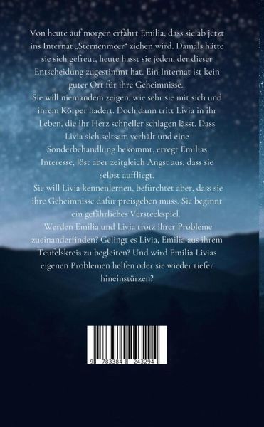 Von heute auf morgen erfährt Emilia, dass sie ab jetzt ins Internat "Sternenmeer" ziehen wird. Damals hätte sie sich gefreut, heute hasst sie jeden, der dieser Entscheidung zugestimmt hat. Ein Internat ist kein guter Ort für ihre Geheimnisse. Sie will niemandem zeigen, wie sehr sie mit sich und ihrem Körper hadert. Doch dann tritt Livia in ihr Leben, die ihr Herz schneller schlagen lässt. Dass Livia sich seltsam verhält und eine Sonderbehandlung bekommt, erregt Emilias Interesse, löst aber zeitgleich Angst aus, dass sie selbst auffliegt. Sie will Livia kennenlernen, befürchtet aber, dass sie ihre Geheimnisse dafür preisgeben muss. Sie beginnt ein gefährliches Versteckspiel. Werden Emilia und Livia trotz ihrer Probleme zueinanderfinden? Gelingt es Livia, Emilia aus ihrem Teufelskreis zu begleiten? Und wird Emilia Livias eigenen Problemen helfen oder sie wieder tiefer hineinstürzen?