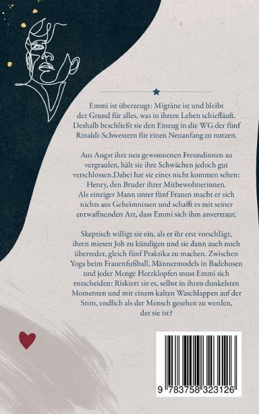 Emmi ist überzeugt: Migräne ist und bleibt der Grund für alles, was in ihrem Leben schiefläuft. Deshalb beschließt sie, den Einzug in die WG der fünf Rinaldi-Schwestern für einen Neuanfang zu nutzen. Aus Angst, ihre neu gewonnenen Freundinnen zu vergraulen, hält sie ihre Schwächen jedoch gut verschlossen. Dabei hat sie eines nicht kommen sehen: Henry, den Bruder ihrer Mitbewohnerinnen. Als einziger Mann unter fünf Frauen macht er sich nichts aus Geheimnissen und schafft es mit seiner entwaffnenden Art, dass Emmi sich ihm anvertraut. Skeptisch willigt sie ein, als er ihr erst vorschlägt, ihren miesen Job zu kündigen und sie dann auch noch überredet, gleich fünf Praktika zu machen. Zwischen Yoga beim Frauenfußball, Männermodels in Badehosen und jeder Menge Herzklopfen muss Emmi sich entscheiden: Riskiert sie es, selbst in ihren dunkelsten Momenten und mit einem kalten Waschlappen auf der Stirn, endlich als der Mensch gesehen zu werden, der sie ist?