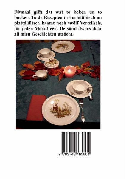 Ditmaal gifft dat wat to koken un to backen. To de Rezepten in hochdüütsch un plattdüütsch kaamt noch twölf Vertellsels, för jeden Maant een. De sünd dwars döör all mien Geschichten utsöcht.