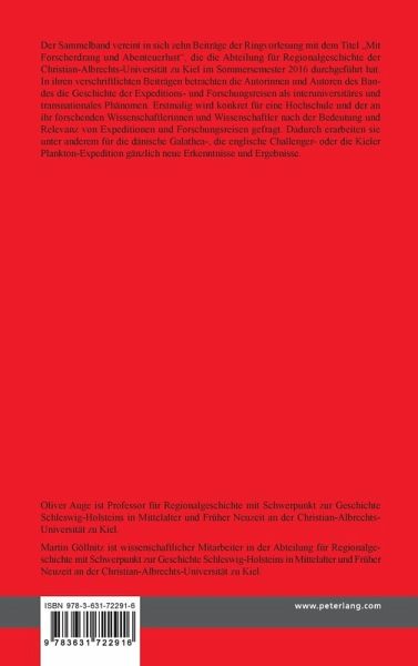 Der Sammelband vereint in sich zehn Beiträge der Ringvorlesung mit dem Titel «Mit Forscherdrang und Abenteuerlust», die die Abteilung für Regionalgeschichte der Christian-Albrechts-Universität zu Kiel im Sommersemester 2016 durchgeführt hat. In ihren verschriftlichten Beiträgen betrachten die Autorinnen und Autoren des Bandes die Geschichte der Expeditions- und Forschungsreisen als interuniversitäres und transnationales Phänomen. Erstmalig wird konkret für eine Hochschule und der an ihr forschenden Wissenschaftlerinnen und Wissenschaftler nach der Bedeutung und Relevanz von Expeditionen und Forschungsreisen gefragt. Dadurch erarbeiten sie unter anderem für die dänische Galathea-, die englische Challenger- oder die Kieler Plankton-Expedition gänzlich neue Erkenntnisse und Ergebnisse.