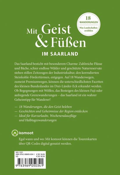 Das Saarland, das sind idyllische Kulturlandschaften mit grenzenlosem Charme. Es bietet für jeden Geschmack etwas: von Flüssen und Bächen über schier endlose Wälder bis hin zu geschützten Natur-Reservaten und korrodierten Steinkohle-Fördertürme als stille Zeitzeugen der Industriekultur. Auf den 18, zumeist vom Deutschen Wanderinstitut ausgezeichneten, Premiumwanderungen, die in diesem Buch vorgestellt werden, gilt es, die unterschiedlichen Facetten des kleinen Bundeslandes im Drei-Länder-Eck zu entdecken. Ob Begegnungen mit Wölfen, das Besteigen des kleinen Fuji oder aufregende Grenzwanderungen - das Saarland ist ein wahrer Geheimtipp, den es lohnt, zu entdecken!> 18 Wanderungen, die den Geist beleben.> Geschichten und Geheimnisse des Saarlandes entdecken.> Mit Tourenvorschlägen, Karten und praktischen Tipps.> Ideal für Kurzurlaube, Wochenendausflüge und Halbtageswanderungen.
