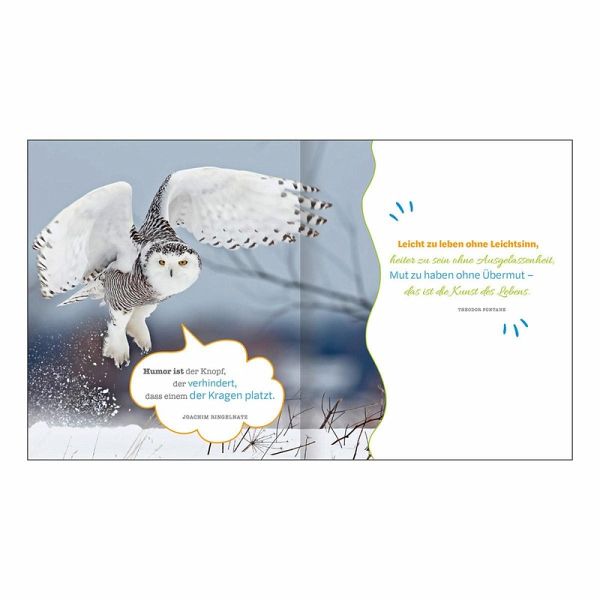 Wer wie die Schneeeule arktische Stürme, eisige Kälte und lange Nächte übersteht; der kann alles schaffen. Eulen gelten als weise Tiere und strahlen eine heitere Gelassenheit aus, mit der auch Sie gut durch den Winter kommen. Lassen sie sich von den humorvollen Zitaten in diesem Buch inspirieren - mal scharf pointiert wie ein Eulenschnabel, mal augenzwinkernd oder mit leisen Zwischentönen. Dazu bezaubern herrliche Eulenfotos mit winterlicher Magie: So weiß und weich gefiedert - man muss diese Vögel einfach gernhaben und sich von ihrer Ruhe und Wärme anstecken lassen!- winterliche Eulen-Fotos- humorvolle Weisheiten und aufbauende Sprüche- einfach tierisch liebenswert!