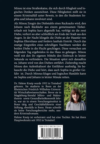 Minou ist eine Straßenkatze, die sich durch Klugheit und logisches Denken auszeichnet. Diese Fähigkeiten stellt sie in einem Kriminalfall unter Beweis, in den die Studenten Sophia und Johann involviert sind. Als Minou Zeugin des Diebstahls eines Rucksacks wird, den Johann nach Rückkehr aus einem gemeinsamen Türkeiurlaub mit Sophia kurz abgestellt hat, verfolgt sie die zwei Diebe, verliert sie aber schließlich am Ende der Stadt aus den Augen. In der Nacht klingeln die Diebe an der Haustür von Sophias Elternhaus und fordern lauthals Eintritt. Durch das mutige Eingreifen eines schrulligen…mehr