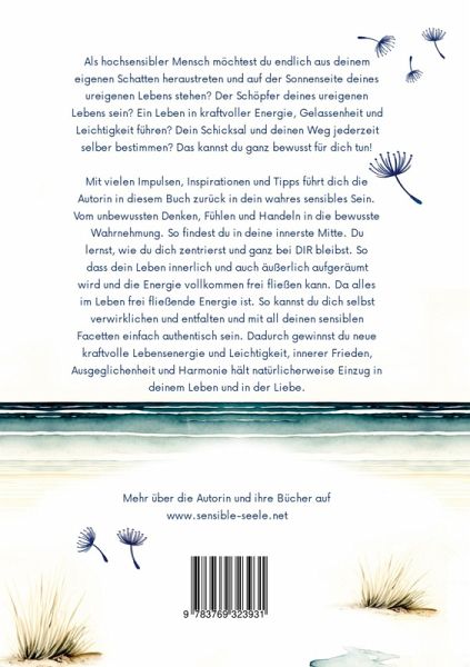 Als hochsensibler Mensch möchtest du endlich aus deinem eigenen Schatten heraustreten und auf der Sonnenseite deines ureigenen Lebens stehen? Der Schöpfer deines ureigenen Lebens sein? Ein Leben voll Kraft und Energie, Gelassenheit und Leichtigkeit führen? Dein Schicksal und deinen Weg jederzeit selber bestimmen? Das kannst du ganz bewusst für dich tun! Du kannst ganz bewusste Entscheidungen treffen, in welche Richtung dein ganz persönlicher Weg weitergehen soll. Damit die Energie, das Leben und die Liebe vollkommen frei fließen kann. Du selbst hast die Entscheidungsgewalt, in deinem eigenen Schatten stehen zu bleiben oder bewusst herauszutreten. Und auf die Sonnenseite zu wechseln. Mit vielen Impulsen, Inspirationen und gezielten Tipps führt dich die Autorin in diesem Buch zurück in dein wahres sensibles Sein. Vom unbewussten Denken, Fühlen und Handeln in die bewusste Wahrnehmung. So findest du in deine innerste Mitte. Du lernst, wie du dich zentrierst und ganz bei DIR bleibst. So dass dein Leben innerlich und auch äußerlich aufgeräumt wird und die Energie vollkommen befreit fließen kann. Da alles im Leben frei fließende Energie ist. Und deine Aufmerksamkeit es bestimmt, wohin dieser Fluss der frei fließenden Energie gelenkt wird. So kannst du dich verwirklichen und entfalten und mit all deinen sensiblen Facetten einfach authentisch sein. Dadurch gewinnst du neue kraftvolle Lebensenergie. Und Leichtigkeit, innerer Frieden, Ausgeglichenheit und Harmonie hält natürlicherweise Einzug in deinem Leben und in der Liebe.