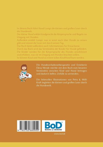 In "Mit Lumpi durch die Hundewelt" führt Hund Lumpi die kleinen und großen Leser durch die Hundewelt. Der kleine Hund erklärt kindgerecht die Körpersprache und Regeln im Umgang mit Hunden.Außerdem erzählt Lumpi, was es sonst noch über Hunde zu wissen gibt und nimmt die Leser mit durch seinen Tag.Das Buch bietet außerdem auch Informationen für Erwachsene.Durch das Buch wird das Verständnis der Kinder für Hunde gefördert. Die Kinder werden für die Körpersprache des Hundes sensibilisiert und erfahren, was sie im Umgang mit Hunden beachten sollen.So können Kind und Hund zu einem tollen KIndHundTeam werden.Dieses Buch bietet eine ideale Grundlage für kleine Hundefreunde, egal ob mit, oder ohne eigenem Hund.