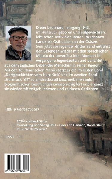 Die Geschichten und Gedichte des vorliegenden Büchleins lassen die glückliche Zeit meiner Kindheit in der Hunsrücker Heimat wieder aufleben. Alle interessierten Leserinnen und Leser sind herzlich eingeladen zu einer Reise mit tiefen Einblicken in das einfache Leben unter den grauen Schieferdächern in den Dörfern des südwestlichen Teils des Rheinischen Schiefergebirges. Die authentisch angewandte moselfränkische Sprache fördert mit ihrer ursprünglichen Charakteristik eine emotionale Verbundenheit der Lesenden mit den vorgestellten Lebensverhältnissen, den lokalen Ereignissen und den Befindlichkeiten der liebenswerten Menschen dieser rauen Mittelgebirgslandschaft knapp über dem 50. Breitengrad. Die 45 literaischen Menüs setzen die im ersten Band "Dorfgeschichten vom Hunsrück" und im zweiten Band "Hunsrück '62" so eindrucksvoll beschriebenen autobiographischen Geschichten zweisprachig fort und ergänzen sie wieder mit zeitgebundenen und zeitlosen Gedichten.