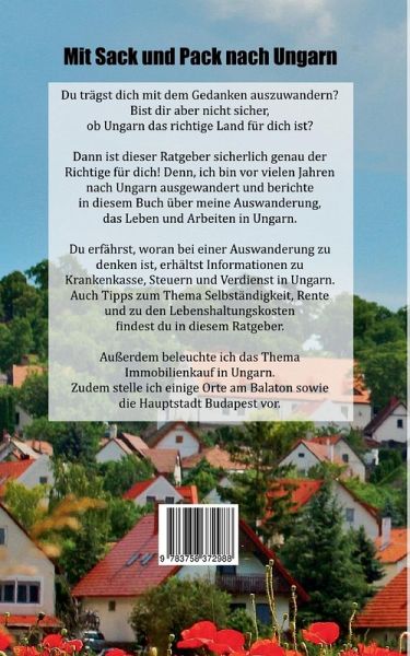 Du trägst dich mit dem Gedanken auszuwandern?Bist dir aber nicht sicher, ob Ungarn das richtige Land für dich ist?Dann ist dieser Ratgeber sicherlich genau der Richtige für dich! Denn die Autorin ist selbst vor vielen Jahren nach Ungarn ausgewandert und erzählt in diesem Buch, was sie in Ungarn erlebt hat.Sie berichtet darüber, was ihre Beweggründe waren nach Ungarn zu gehen, woran bei einer Auswanderung zu denken ist und gibt Informationen zu-Krankenkasse-Steuern-Verdienst-Selbständigkeit-Lebenshaltungskosten und -RenteAuch beleuchtet sie das Thema Immobilienkauf in Ungarn und stellt einige Orte am Balaton sowie die Hauptstadt Budapest vor.Zudem gibt sie einen kurzen Einblick in die ungarische Sprache.Am Schluss des Buches zieht sie ein Fazit darüber, wie es ihr in Ungarn gefällt.