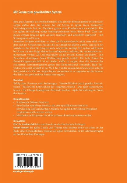 Eine gute Kenntnis des Problembereichs und eine im Projekt geteilte Systemvision sorgen dafür, dass die Summe der mit Scrum in agiler Weise realisierten Systemfragmente bei der Abnahme genau dem Kundenwunsch entspricht. Das zur agilen Entwicklung nötige Hintergrundwissen bietet dieses Buch. Zum Vergleich werden einzelne agile Ansätze analysiert und detailliert vorgestellt - mit Schwerpunkt auf Scrum.