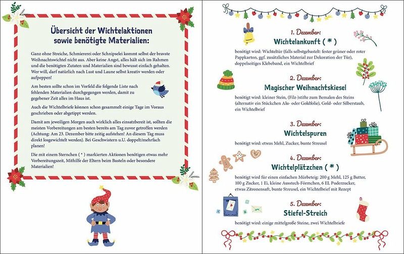 Ein Rundum-Sorglos-Paket für die Wichteltür: enthält 24 Wichtel-Aktionen, hilfreiche Tipps und Brief-Vorlagen sowie eine Materialliste und eine Wichteltür zum Ausschneiden Zusätzliche Beschäftigungsideen für jeden Tag: 24 Rätsel und Ausmalbilder für Kinder ab 3 Jahren, die dank perforierter Seiten herausgetrennt werden können So bleibt der Advent stressfrei: kostengünstige Ideen, die ohne großen Aufwand umgesetzt werden können Sorgt für magische Momente in der Weihnachtszeit