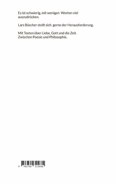 Es ist schwierig, mit wenig Worten viel auszudrücken. Lars Büscher stellt sich gerne der Herausforderung. Mit Texten über Liebe, Gott und die Zeit. Zwischen Poesie und Philosophie.