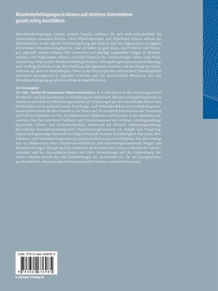 Mitarbeiterbefragungen können positive Impulse auslösen, die sich auch wirtschaftlich für Unternehmen auszahlen können. Denn Mitarbeiterinnen und Mitarbeiter kennen oftmals die Schwachstellen in der eigenen Arbeitsumgebung, der Technik und der Organisation im eigenen betrieblichen Verantwortungsbereich. Und oft haben sie gute Ideen, wie Probleme und Störungen abgestellt werden können. Ihre Antworten auf überlegt ausgewählte Fragen zu Betriebsstruktur und Organisation können wertvolle Hinweise für Verbesserungen liefern und Potenziale auf dem Weg zu mehr Wettbewerbsfähigkeit heben. Arbeitgeber gewinnen dadurch allerdings auch wichtige Einblicke in das Betriebsklima, die allgemeine Situation und das Image des Unternehmens aus Sicht der Beschäftigten. Diese in der Praxis erprobte und bewährte Handlungshilfe informiert praxisgerecht in logischen Schritten und mit anschaulichen Beispielen, wie eine Mitarbeiterbefragung gezielt und richtig durchgeführt wird.