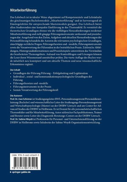 gleichnamigen Bachelormoduls "Mitarbeiterführung" und ist hervorragend als Einstiegslektüre für das entsprechende Mastermodule geeignet. Das Lehrbuch bietet allen Studierenden eine