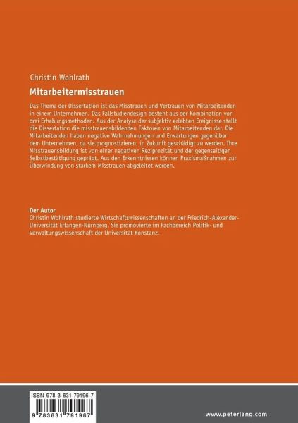 Die vorliegende Publikation thematisiert das Misstrauen und Vertrauen von Mitarbeitenden in einem Unternehmen. Das Fallstudiendesign besteht aus der Kombination von drei Erhebungsmethoden. Aus der Analyse der subjektiv erlebten Ereignisse stellt die Autorin die misstrauensbildenden Faktoren von Mitarbeitenden dar. Die Mitarbeitenden haben negative Wahrnehmungen und Erwartungen gegenüber dem Unternehmen, da sie prognostizieren, in Zukunft geschädigt zu werden. Ihre Misstrauensbildung ist von einer negativen Reziprozität und der gegenseitigen Selbstbestätigung geprägt. Aus den Erkenntnissen können Praxismaßnahmen zur Überwindung von starkem Misstrauen abgeleitet werden.