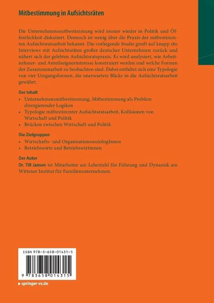 Die Unternehmensmitbestimmung wird immer wieder in Politik und Öffentlichkeit diskutiert. Dennoch ist wenig über die Praxis der mitbestimmten Aufsichtsratsarbeit bekannt. Die vorliegende Studie greift auf knapp 180 Interviews mit Aufsichtsräten großer deutscher Unternehmen zurück und nähert sich der gelebten Aufsichtsratspraxis. Es wird analysiert, wie Arbeitnehmer- und Anteilseignerinteresse konstruiert werden und welche Formen der Zusammenarbeit zu beobachten sind. Dabei entfaltet sich eine Typologie von vier Umgangsformen, die unerwartete Blicke in die Aufsichtsratsarbeit gewährt.