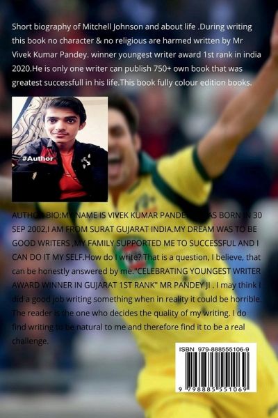 Short biography of Mitchell Johnson and about life .During writing this book no character & no religious are harmed written by Mr Vivek Kumar Pandey. winner youngest writer award 1st rank in india 2020.He is only one writer can publish 760+ own book that was greatest successfull in his life. This All Credit Goes To My Super Hero Daddy.This book fully colour edition books.