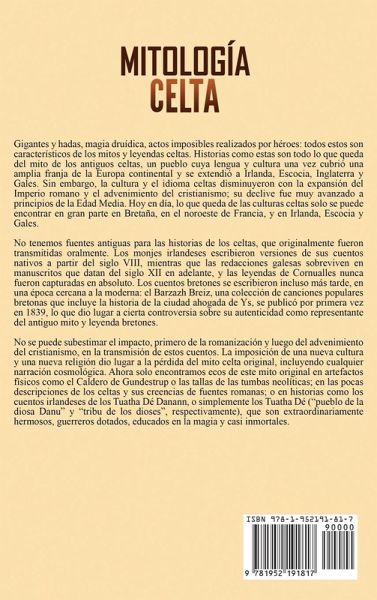 Si busca una colección de mitos celtas para cualquier edad, siga leyendo... Gigantes y hadas, magia druídica, actos imposibles realizados por héroes: todos estos son rasgos de los mitos y leyendas celtas. En este libro, descubrirá historias heroicas sobre dioses y diosas, y cuentos épicos de amor y traición, todos llenos de espiritualismo e incluso de humor ocasional. Los mitos celtas cobrarán vida, así que todos los detalles serán más que un montón de meros hechos. Mitología Celta: Mitos celtas fascinantes de dioses, diosas, héroes y criaturas legendarias incluye historias como:Los Hijos de Lir Los Hijos de Lir Cómo Cú Chulainn obtuvo su nombre Pwyll, Príncipe de la muerte La historia de Culhwch y Olwen El romance de Tristán e Isolda ¡Y más! ¡Adquiera este libro para aprender más sobre la mitología celta!