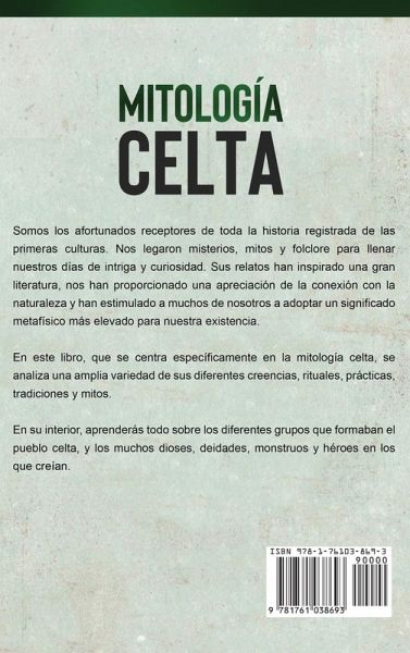 Mitología Celta Adéntrate en el mundo de los celtas y explora la rica historia, cultura y mitología de este fascinante pueblo. Este libro ofrece una guía completa de la mitología celta, desde los numerosos dioses y diosas hasta las cautivadoras historias y leyendas que conforman este mundo antiguo. Descubre los diferentes grupos que formaban el pueblo celta, incluidos los galos, los británicos y los irlandeses. A través de una narración vívida y una investigación en profundidad, este libro te lleva en un viaje en el tiempo para explorar la vida cotidiana, los rituales y las creencias de los antiguos celtas. Conoce a los numerosos dioses y diosas de la mitología celta, desde la diosa madre Danu hasta la diosa guerrera Morrigan. Explora las historias de los héroes y monstruos que componen la mitología celta, incluido el relato épico de Cuchulainn. Con fascinantes revelaciones, este libro ofrece una mirada única y apasionante al mundo de la mitología celta. Conoce los antiguos rituales y prácticas que se utilizaban para comunicarse con los dioses y atraer la prosperidad y la buena fortuna al pueblo. Descubre cómo la mitología de los celtas ha influido en el arte, la literatura y la cultura a lo largo de la historia, y cómo sigue cautivando e inspirando a la gente hoy en día. Tanto si es un entusiasta de la mitología como si simplemente busca una aventura, este libro es de lectura obligada. Experimenta hoy la magia y la maravilla de la mitología celta con esta completa guía de los dioses y diosas, historias y leyendas que han cautivado la imaginación de la gente durante siglos.